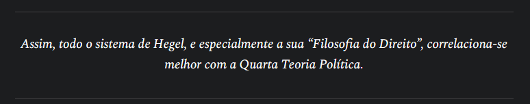Assim, todo o sistema de Hegel, e especialmente sua “Filosofia do Direito”, correlaciona-se melhor com a Quarta Teoria Política.